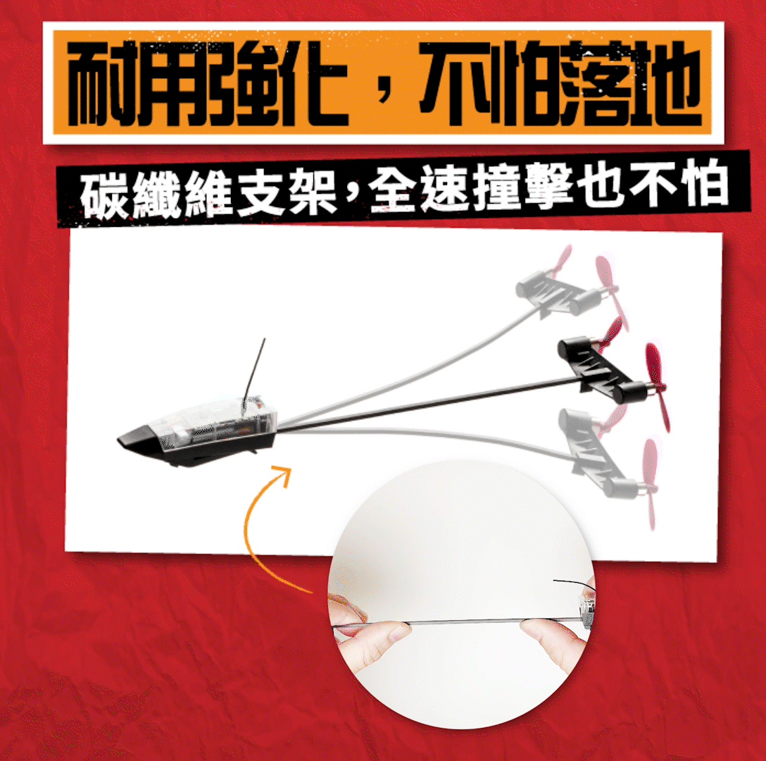 強化耐用材質,不怕飛機墜落,尼龍機鼻也能保護微電腦,就算全速撞擊也不怕